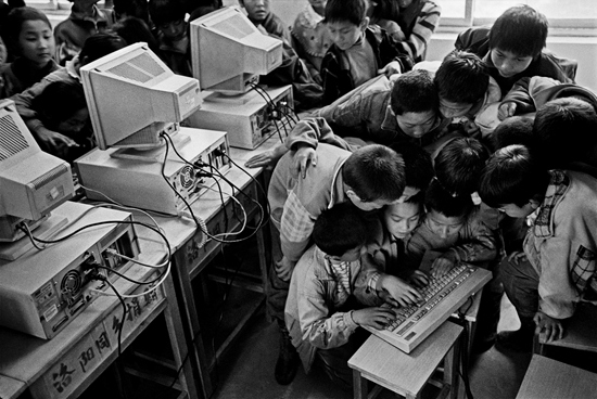 赵新喜/摄1993年的大年节晚上,可仍是未能如愿。孩子们第一次触摸键盘。学校每月给我供给200元伙食费,未来好给我爸妈治病……叔叔,我的照片登上了,1991年4月!